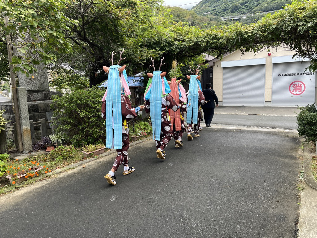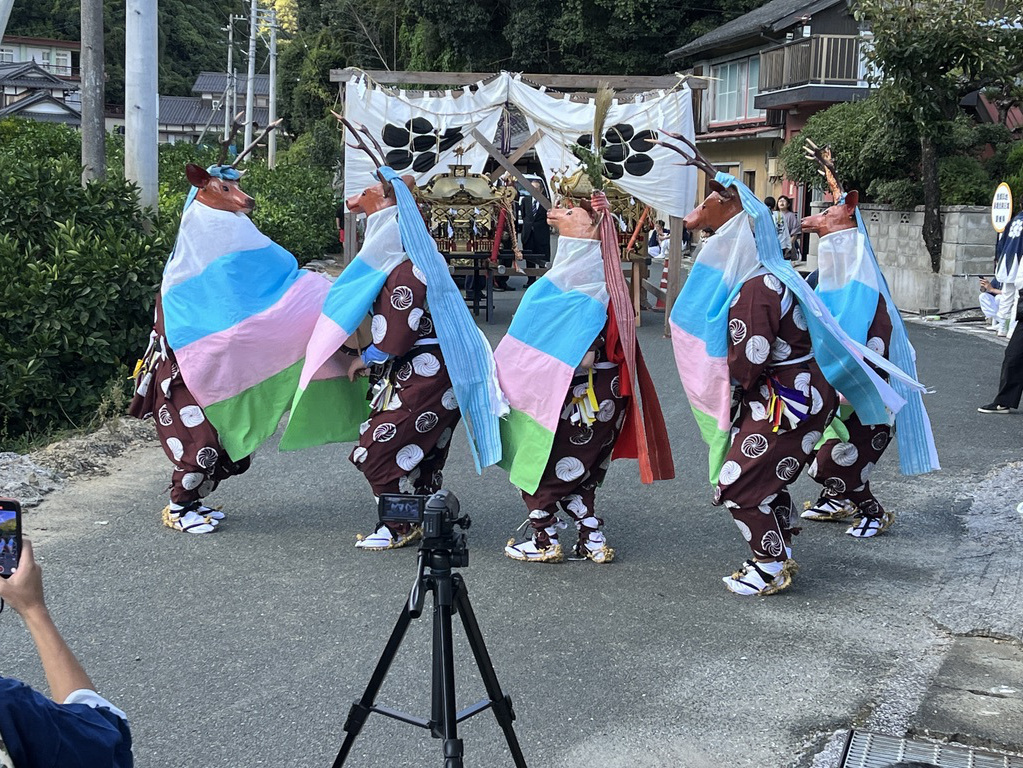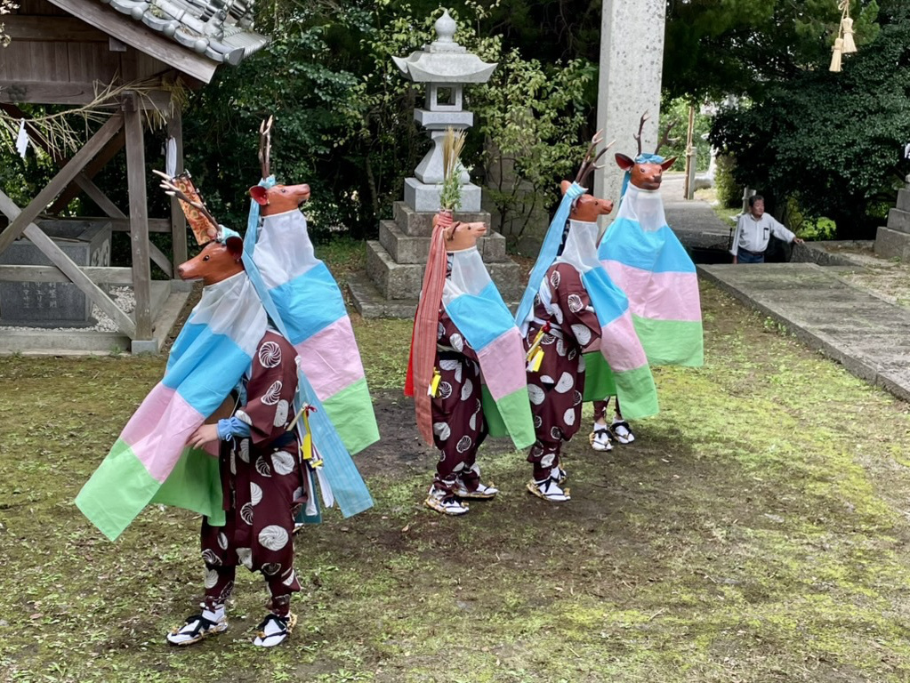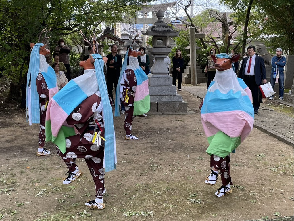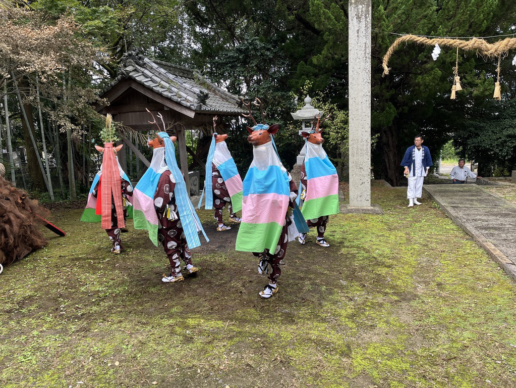 新田御旅所にて五ツ鹿踊り