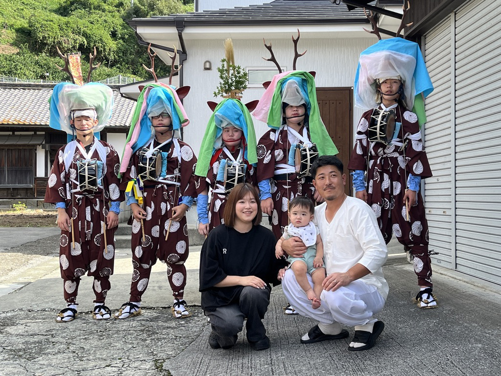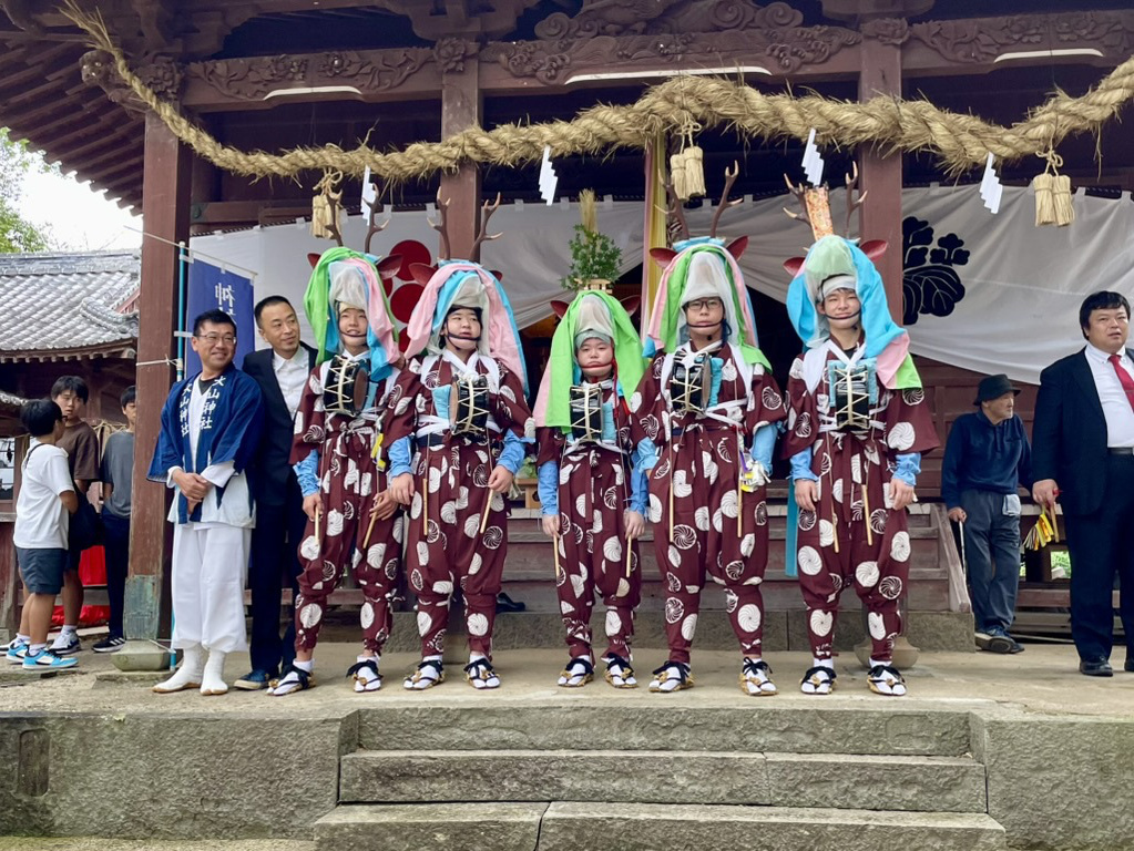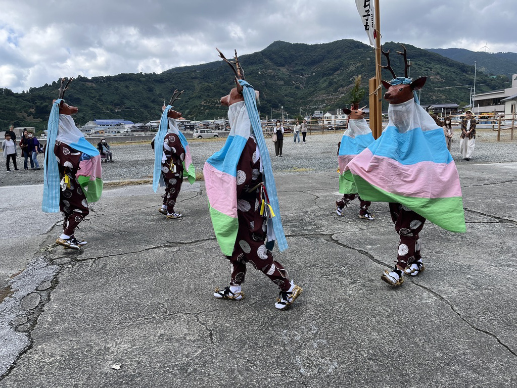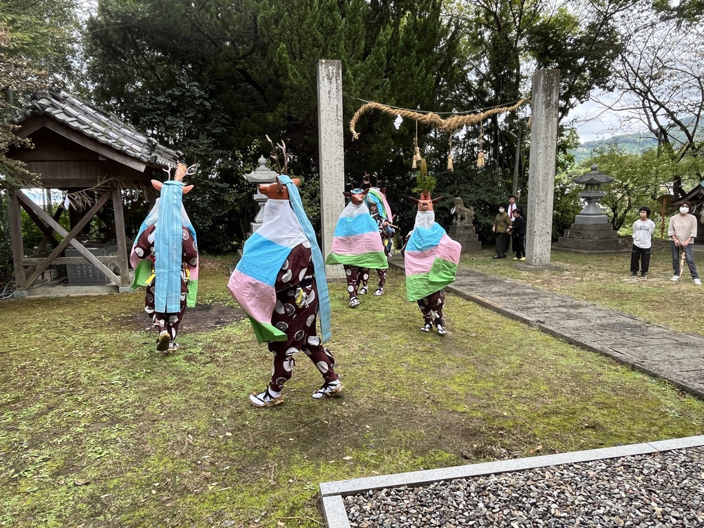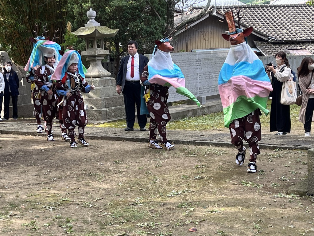 大浦御旅所にて五ツ鹿踊り