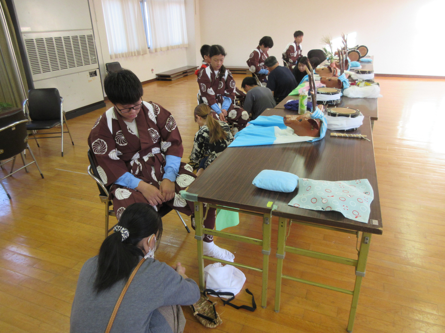 前日五ツ鹿踊り衣装準備