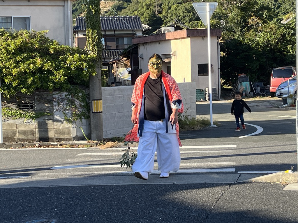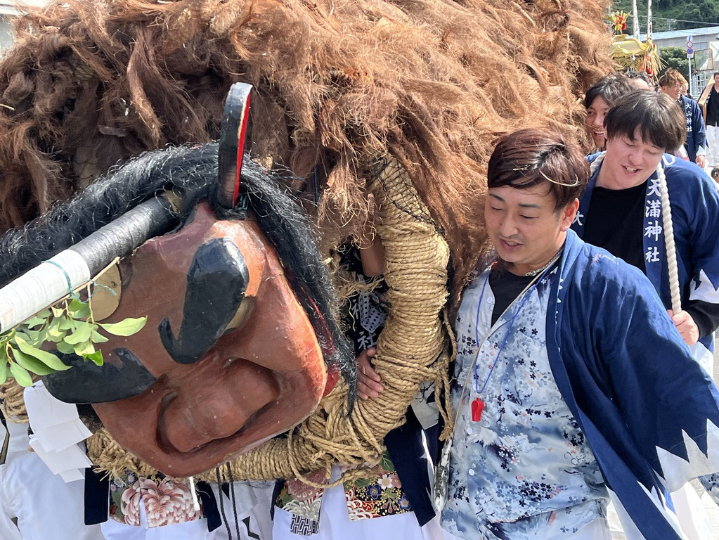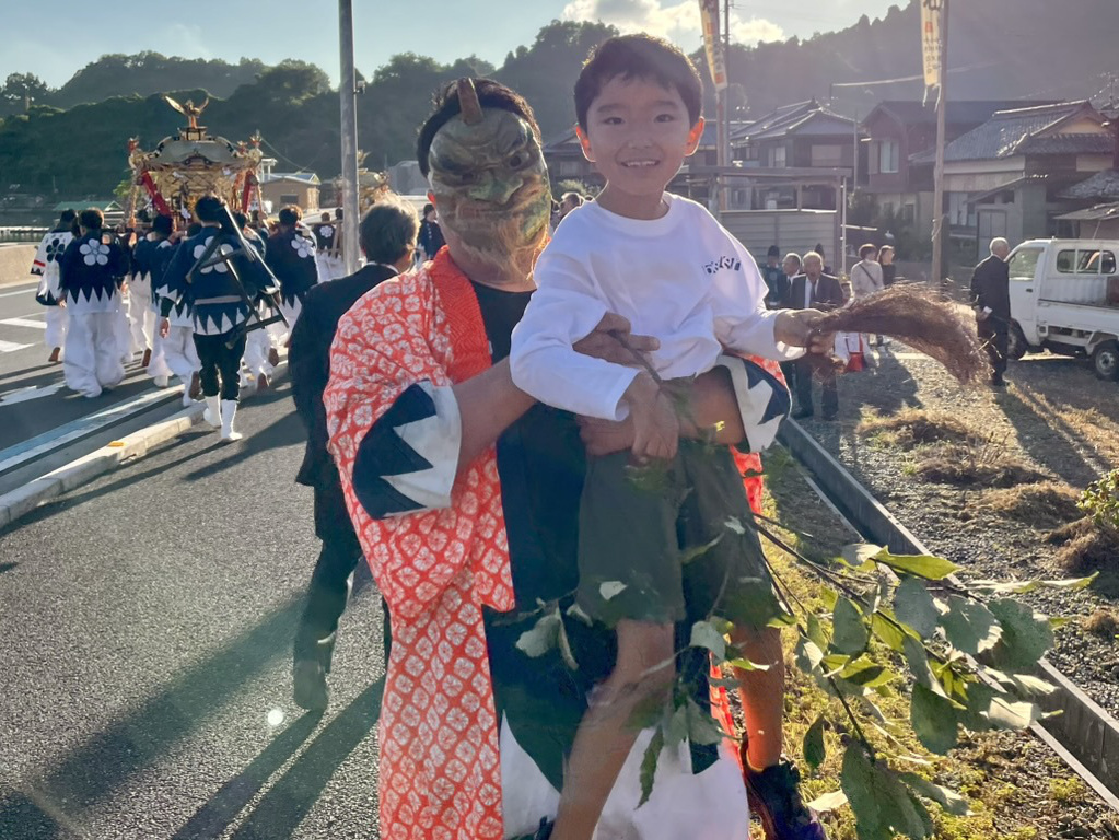 大浦御旅所へ鬼も