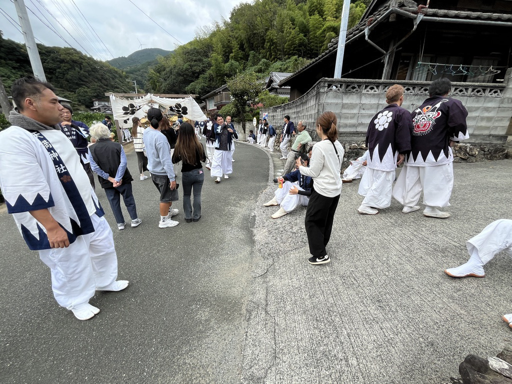 大浦御旅所近くにてお練り