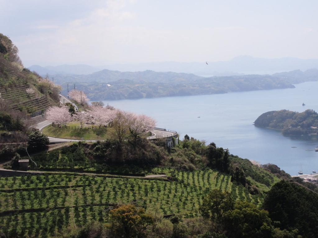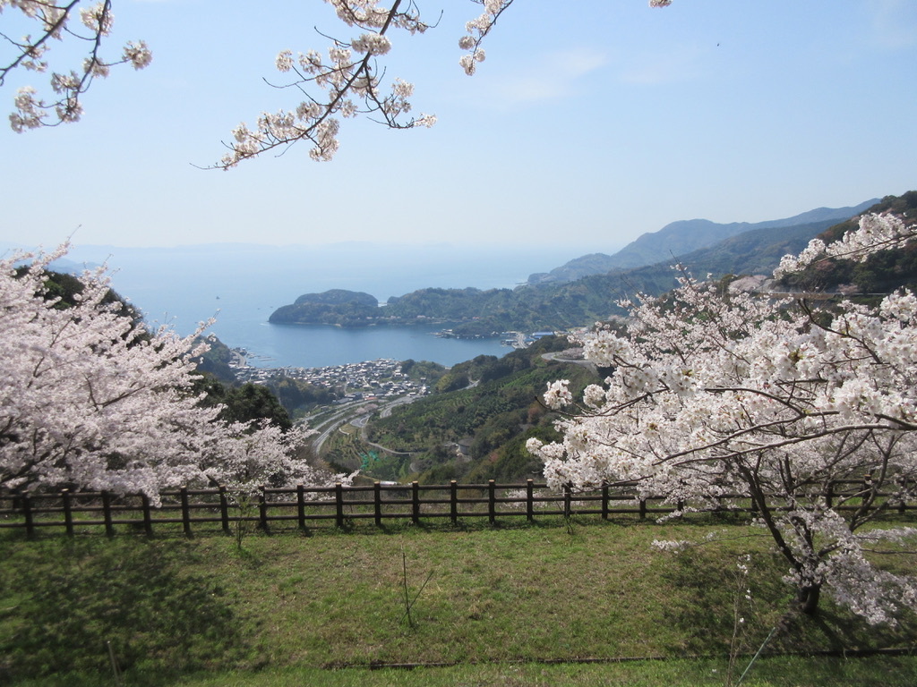 また春には桜祭りが行われ、九十九折れの峠沿いに植えられた樹齢80年に達する老木やその他約500本の桜並木と宇和海がマッチして素晴らしい景観を成しています。